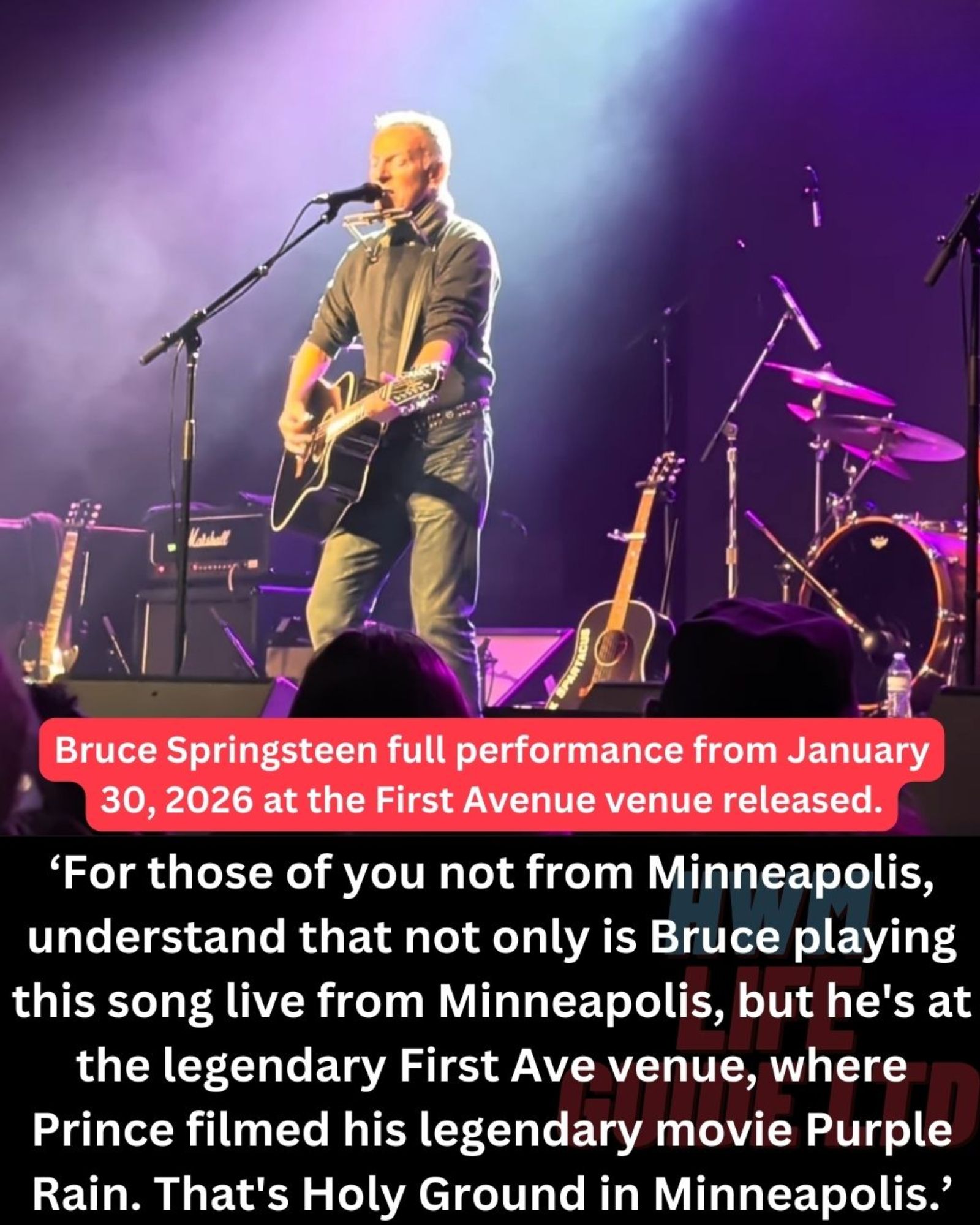 Three hours after the performance was released, fans around the world were already calling it more than a concert. It showed Bruce Springsteen standing beneath the low, familiar lights of First Avenue in Minneapolis.