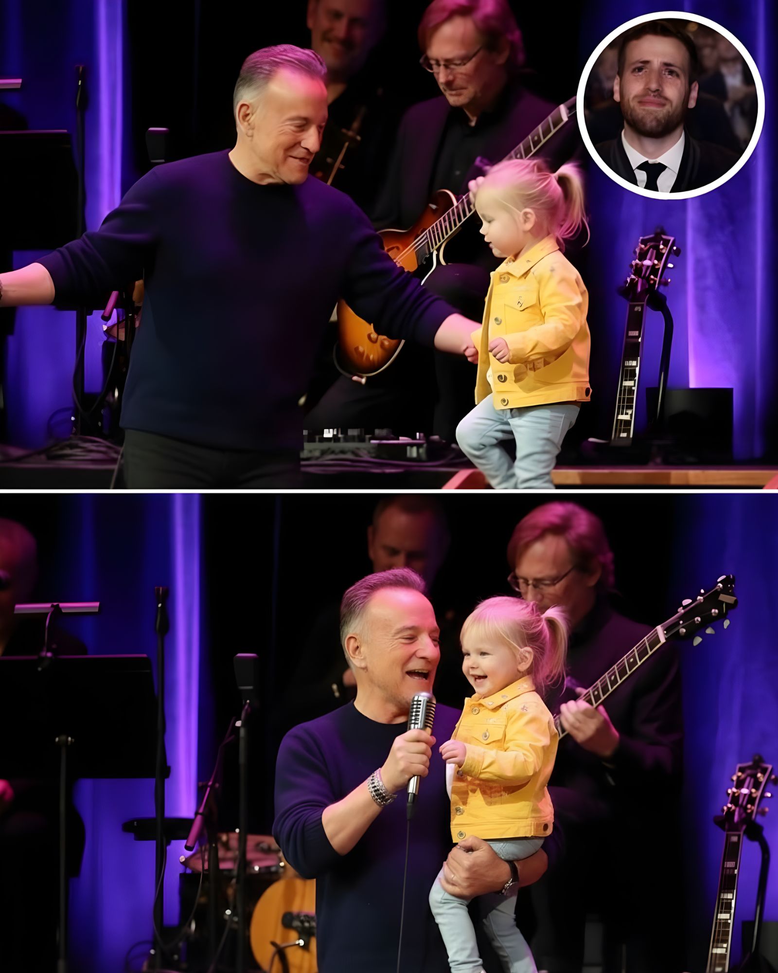 Bruce Springsteen stood up, not rushing, not performing. Bruce Springsteen brushed a thumb over the little girlβs sleeve like a final check: youβre okay, youβre here, youβre not alone. The little girl nodded once, stronger now, and Bruce Springsteen guided the little girl toward the stage door.