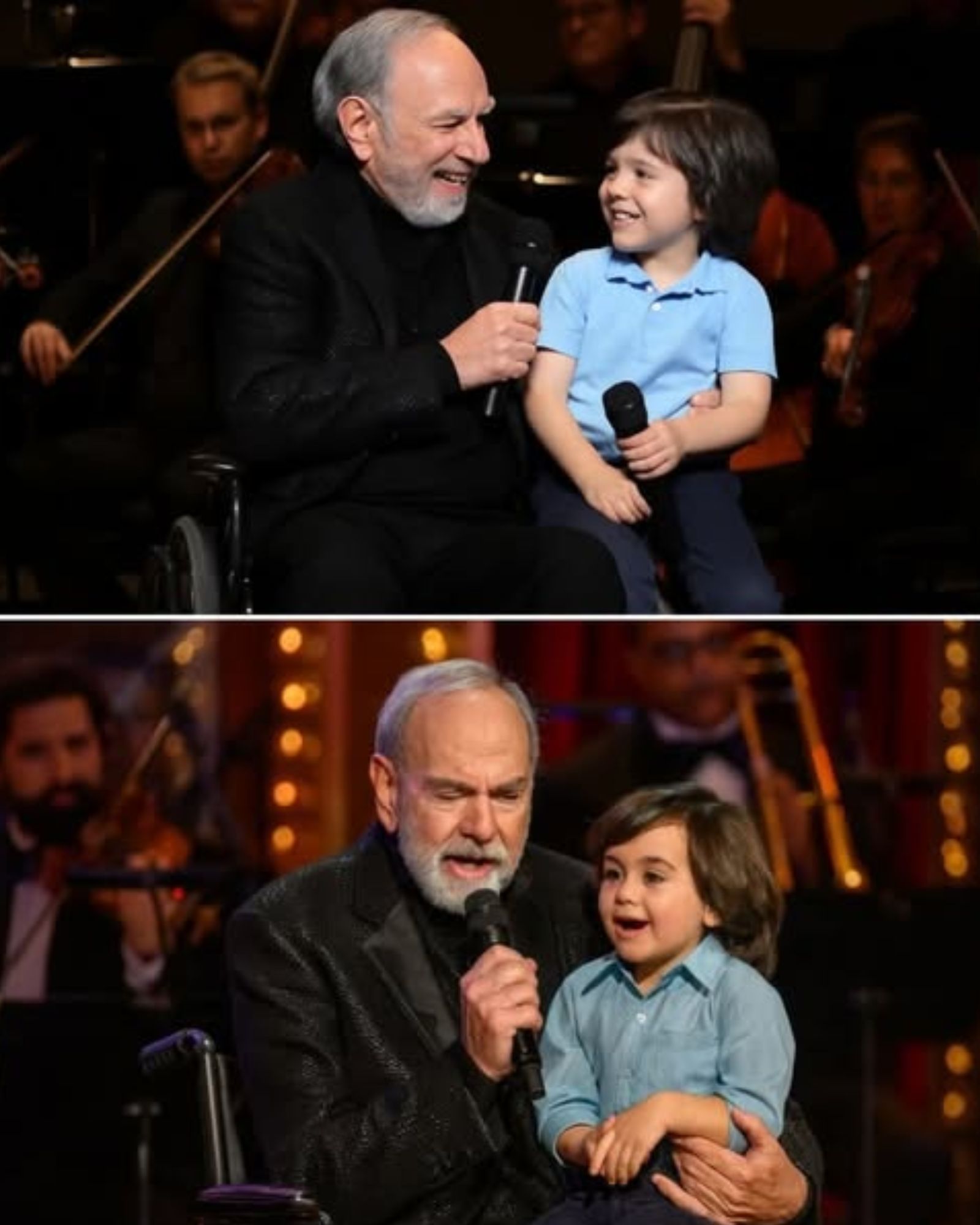As the music swelled, Neil stepped back, giving his grandson the stage. Alone, the boy carried an entire verse — trembling at first, then steady, his voice filling the hall with unexpected strength. The audience held its breath until his final note, then erupted in applause so powerful it shook the rafters.