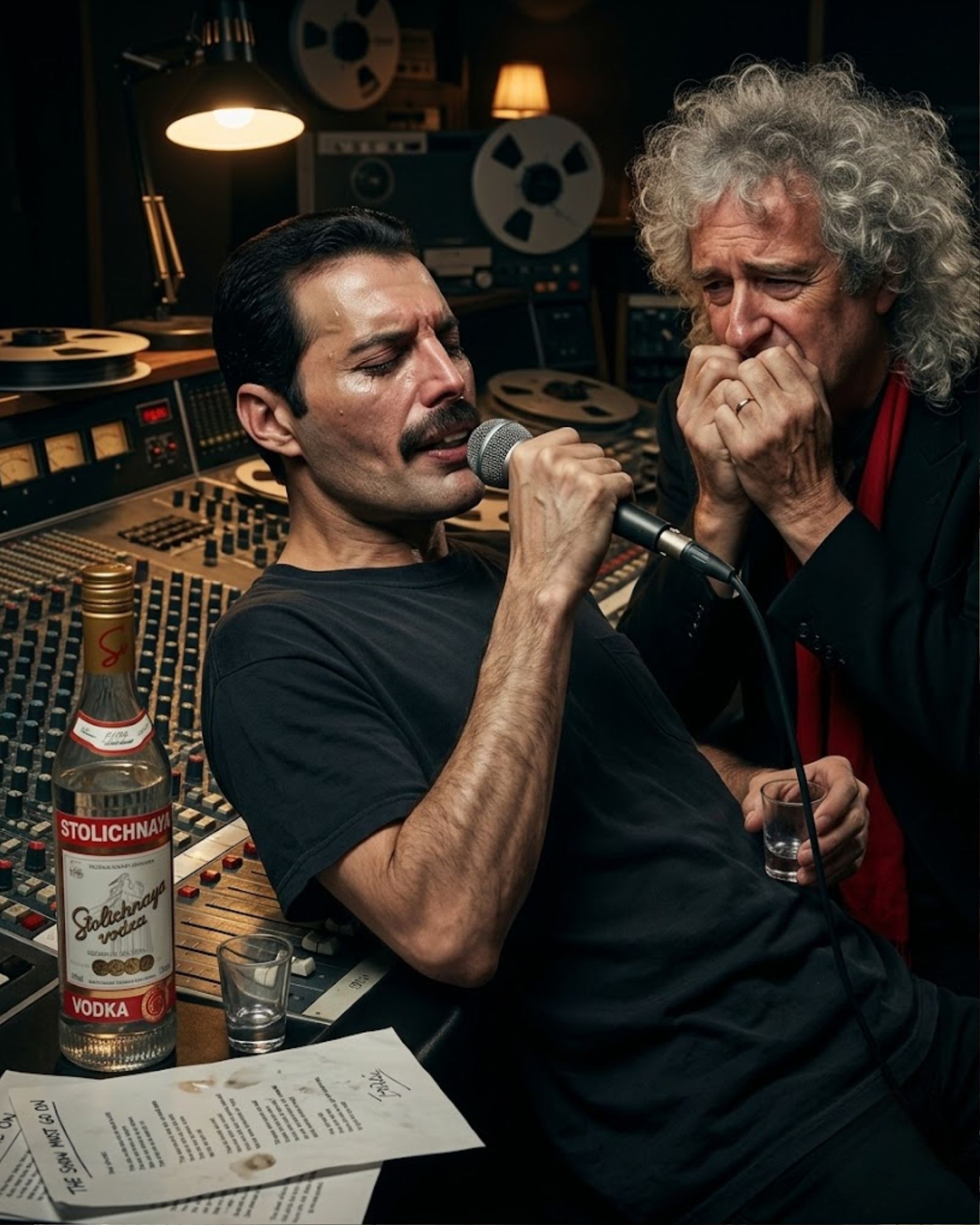 So Freddie Mercury took a shot of vodka, steadied himself against the mixing desk, and sang.
