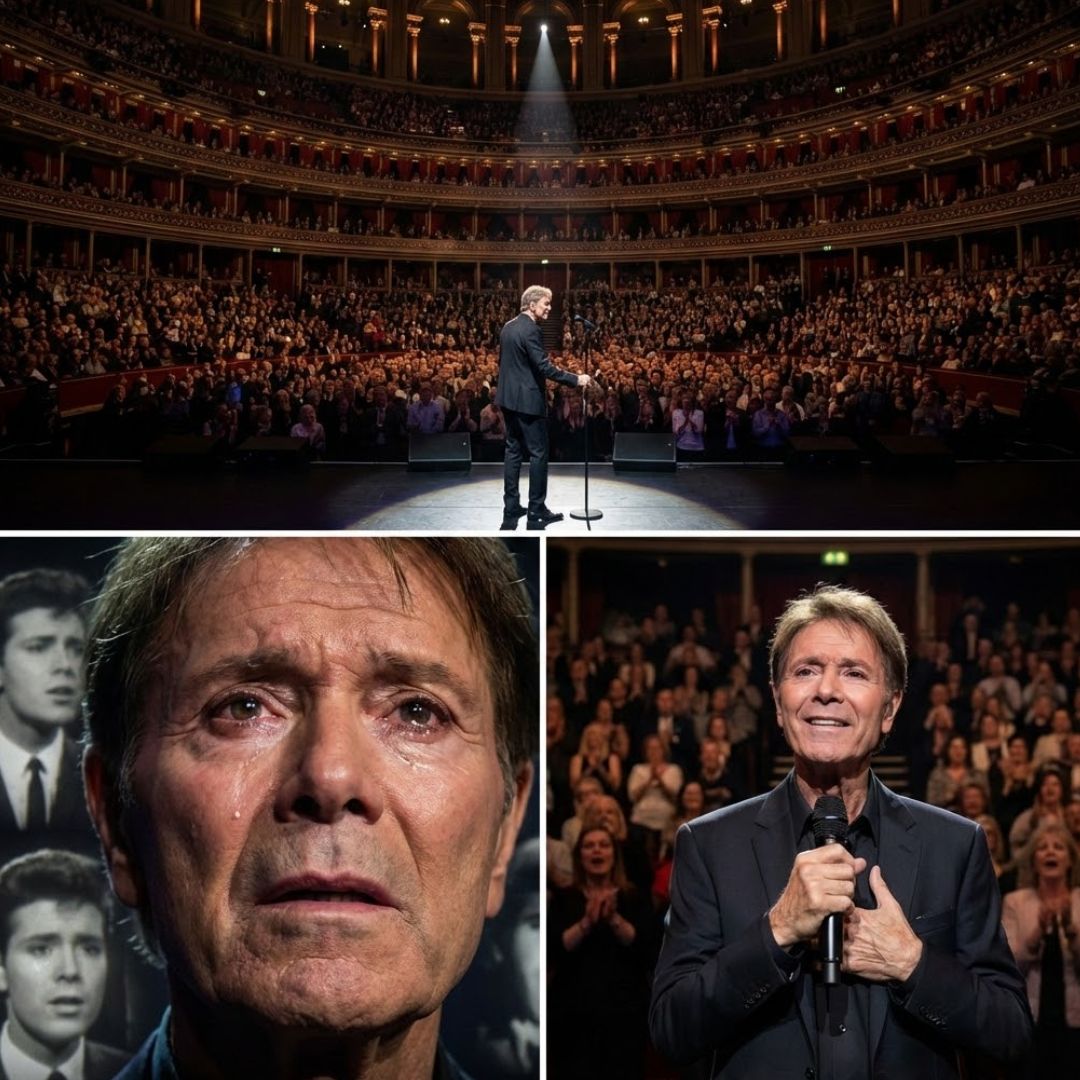 Under the soft, amber lights of the Royal Albert Hall, Cliff Richard stood alone at center stage. No movement. No rush. Just a man and a microphone that had followed him through more than six decades of music. His fingers rested lightly on the stand, almost as if he were steadying himself rather than preparing to sing.