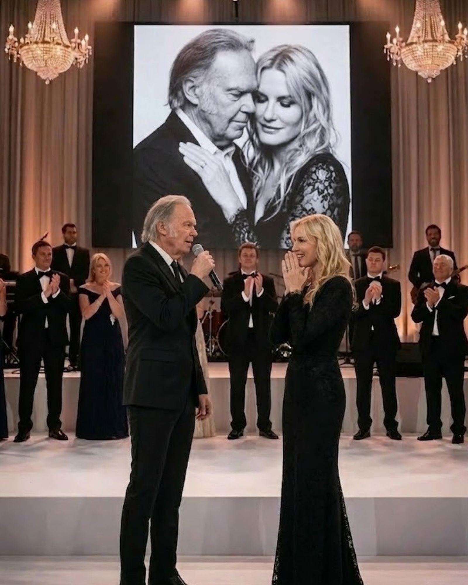 And perhaps that is the detail people will keep returning to. Neil Young sang, Daryl Hannah listened, and for a few minutes an entire room seemed to understand that love, when it survives long enough, no longer needs grand language. Sometimes it only needs a guitar, a steady gaze, and the courage to say everything without saying very much at all.
