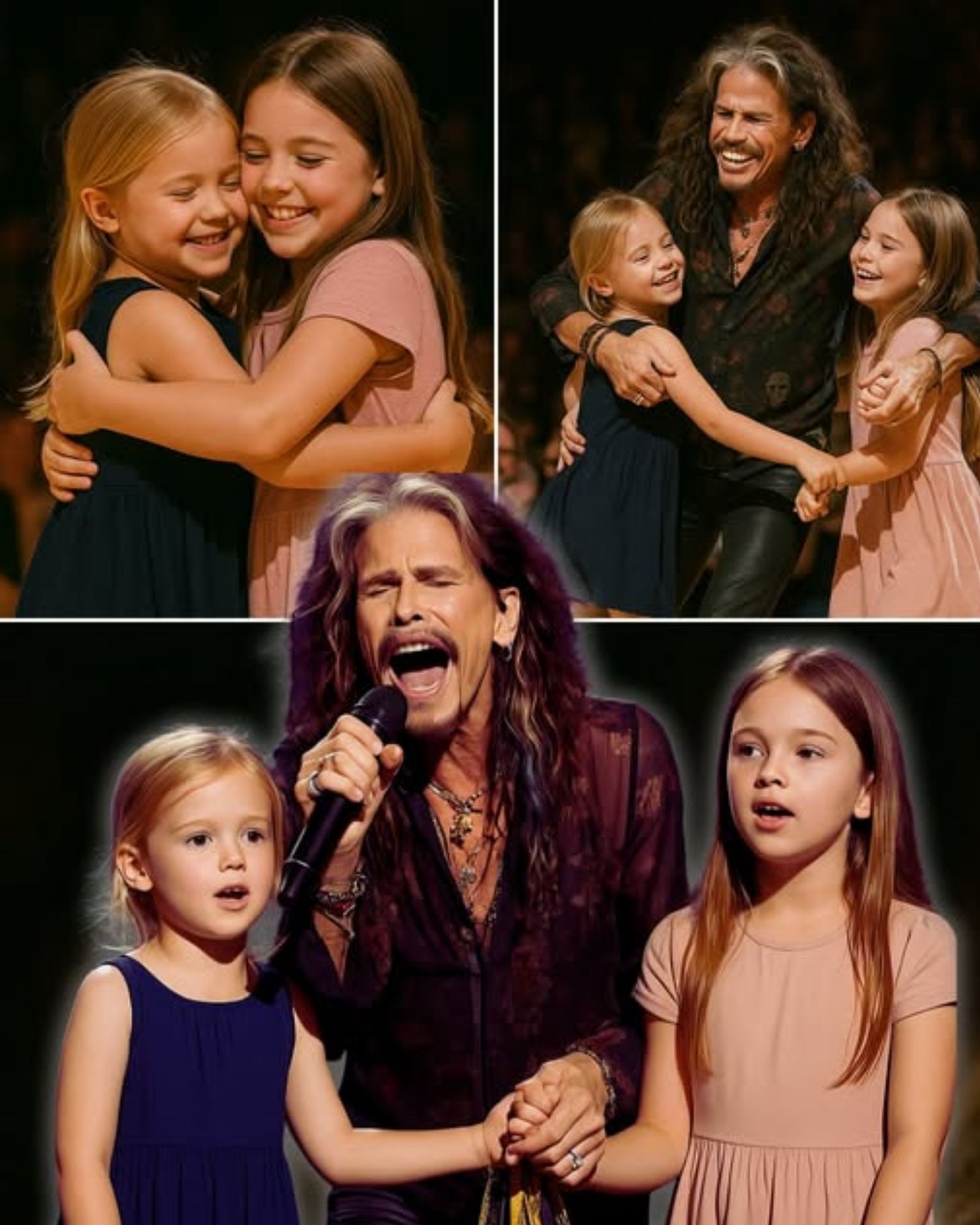 On the giant screens, the usual pyrotechnics and graphics were replaced by a single, powerful image: a grandfather, illuminated in a soft spotlight, singing to his granddaughters. Tyler’s voice was raw with a vulnerability rarely heard. Each note seemed to hold the weight of a lifetime—the joy, the struggles, the gratitude. As he reached the chorus, Lula wrapped her arms around his leg, and little Isabella clutched his hand, her tiny fingers lost between his iconic rings.