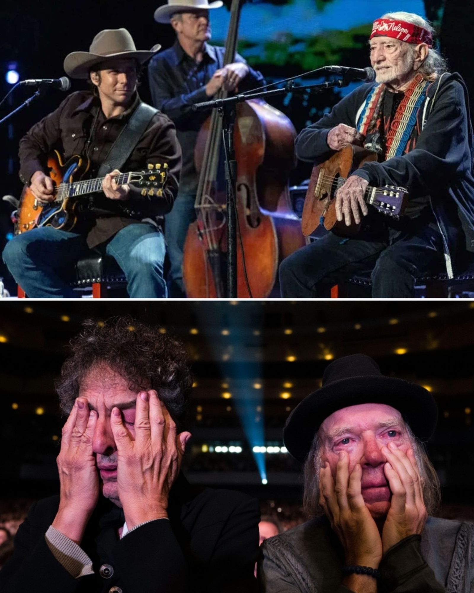 The night had already been stacked with legends: Neil Young, John Mellencamp, Dave Matthews, Margo Price, and even a surprise appearance by Bob Dylan. Yet when Willie and Lukas leaned into those fragile, soulful lines, the crowd fell silent. Two generations sang about love, mortality, and gratitude — and it felt less like a performance and more like scripture set to melody.