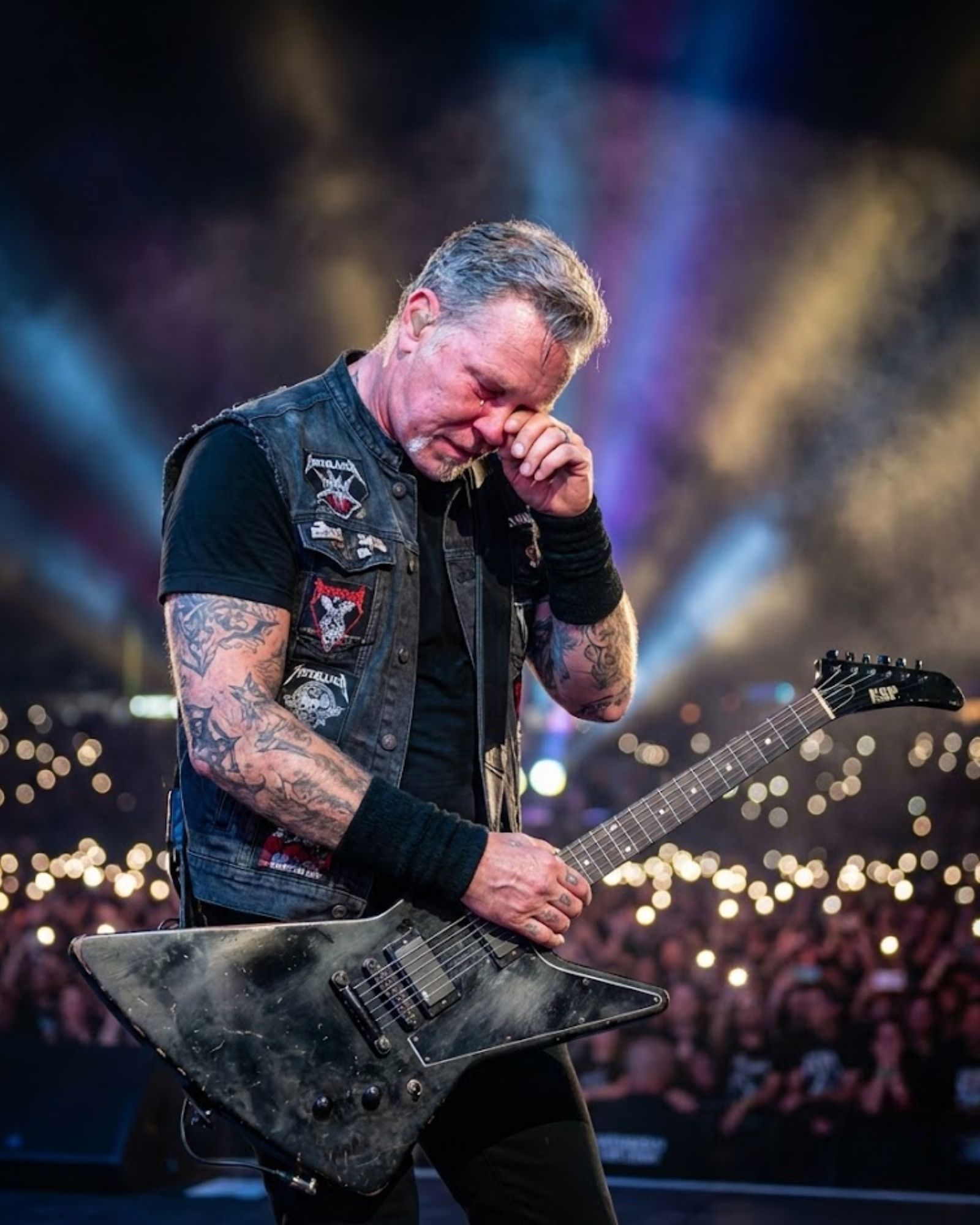 James, the man who usually stands alone, buried his face in Lars’ shoulder and let go. For a brief moment, they weren’t Metallica, the biggest band in the world. They were just three friends who had survived tragedy, addiction, loss, and fame, still standing together against the darkness.