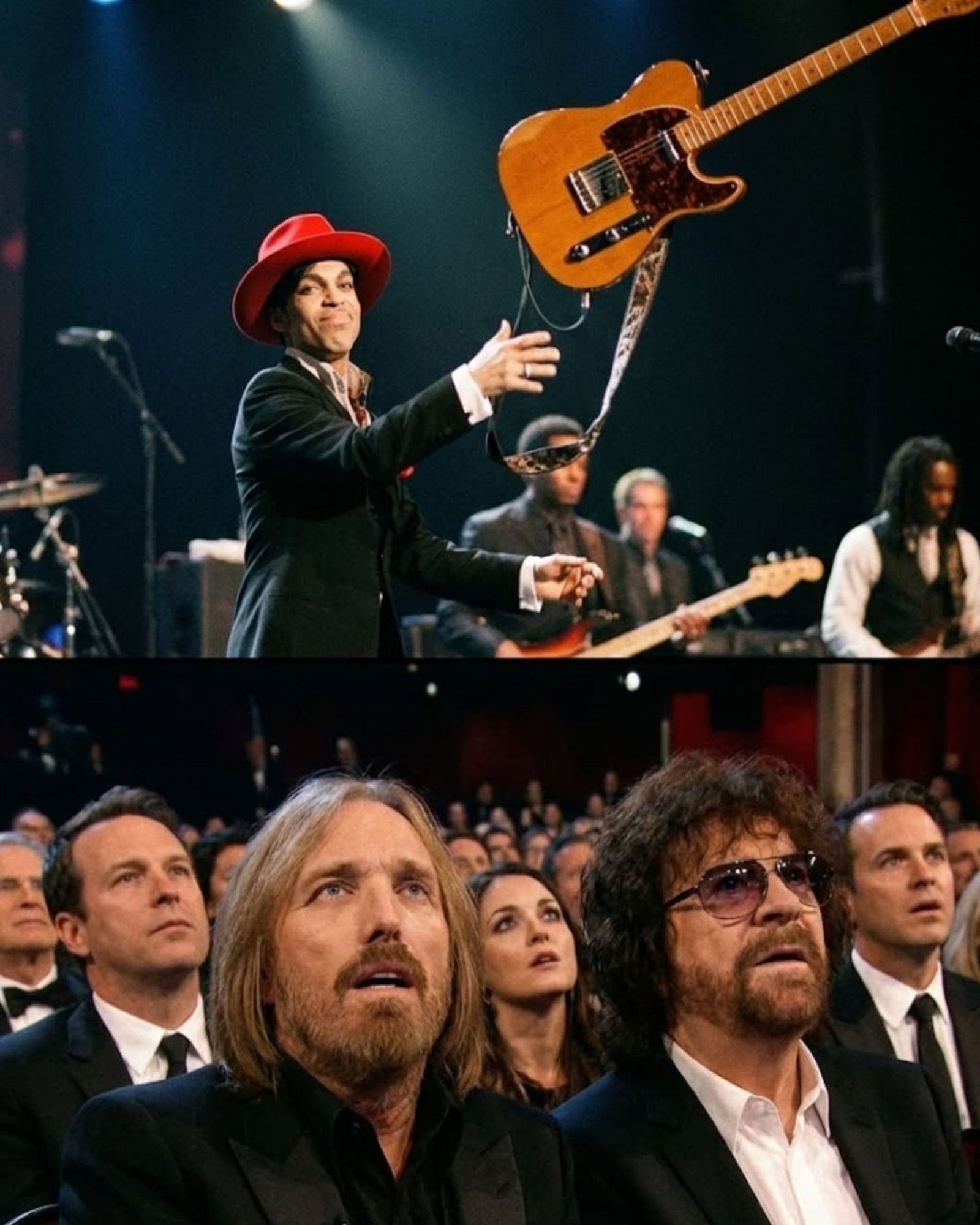 On stage, even the legends looked surprised. Tom Petty kept playing, but Tom Petty also watched. Jeff Lynne held the rhythm steady like a person gripping a railing during a sudden gust. Nobody tried to compete with Prince. Nobody could. The room had already decided what it was listening to.
