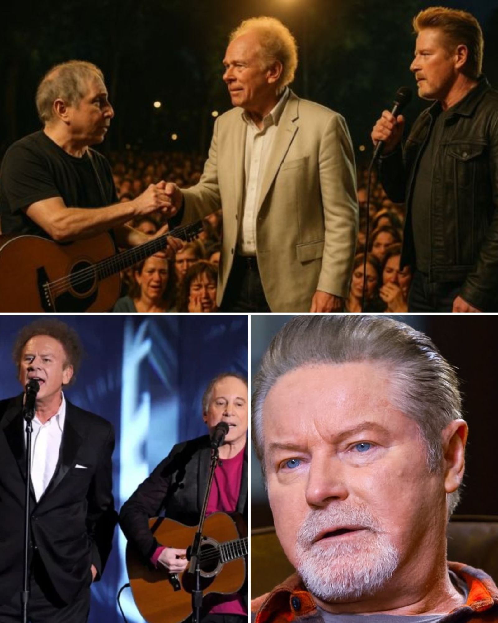The park was overflowing long before the show even began. People pressed shoulder to shoulder, strangers becoming temporary family as they waited for Paul Simon and Art Garfunkel to walk into the spotlight. You could feel the crowd’s heartbeat — restless, excited, almost trembling — like everyone already sensed something bigger than a simple performance was coming.