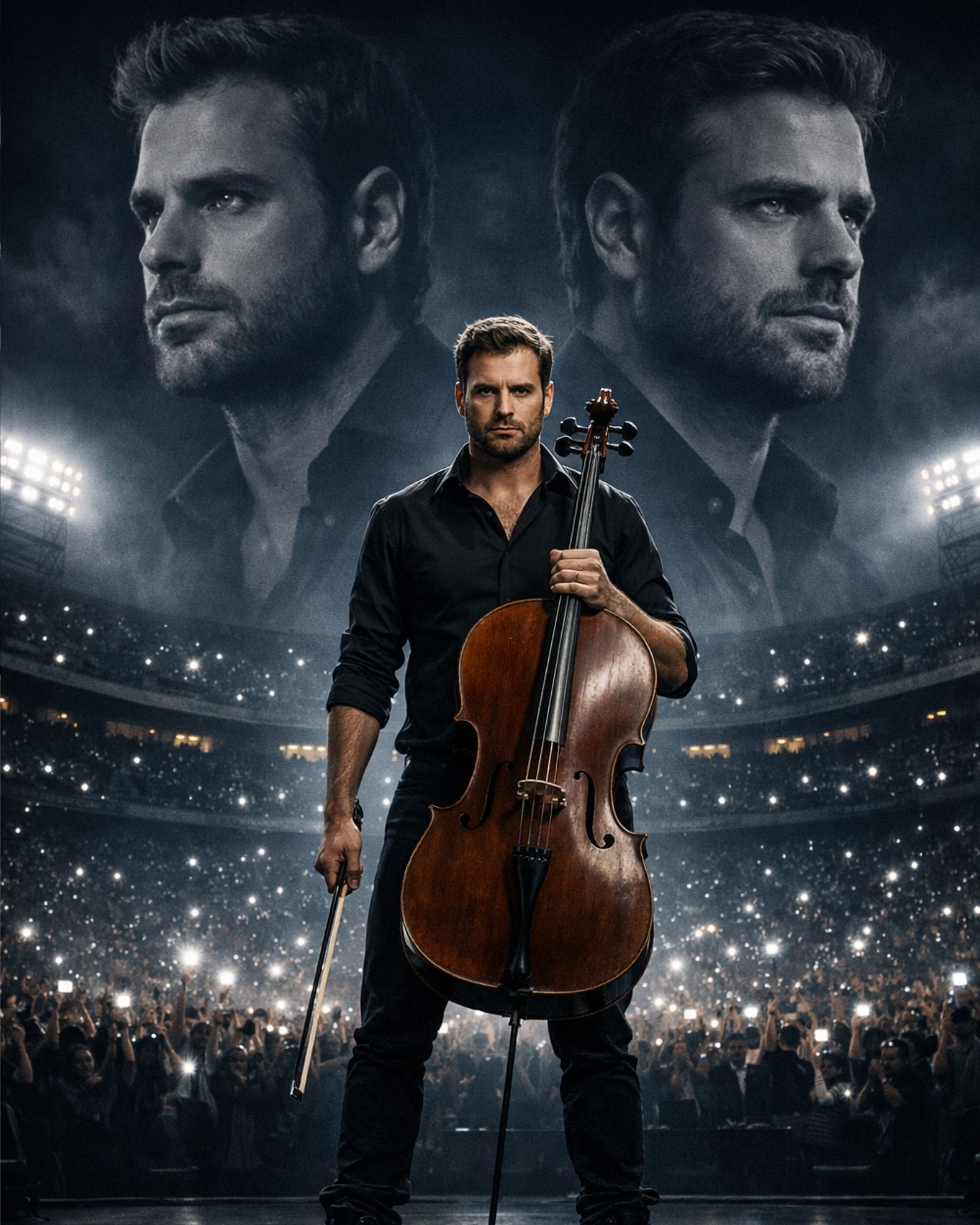 When HAUSER stepped onto the field, there was no announcement that could prepare the crowd for what was coming. At 39, the Croatian cellist known for breaking boundaries between classical and modern music stood completely alone — no band, no collaborators, no visual distractions.